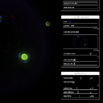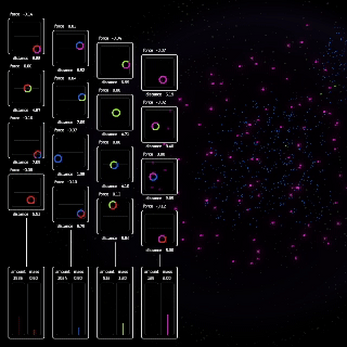 Explore the intricacies of particle interactions. Adjust parameters and observe how emergent behaviours are developing from a few simple rules.
